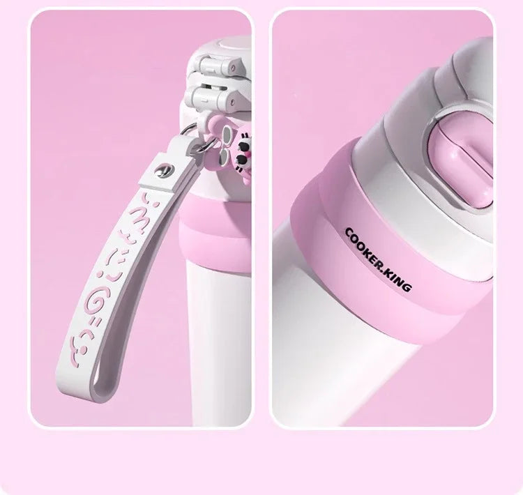 Cooker King 510ML Kids Water Bottles with Straw, a delightful and functional companion for children on the go. Crafted from premium 316 stainless steel, this thermos ensures both safety and durability, promising long-lasting use. Its excellent thermal insulation keeps beverages hot or cold for hours, making it perfect for school, picnics, or any adventure.