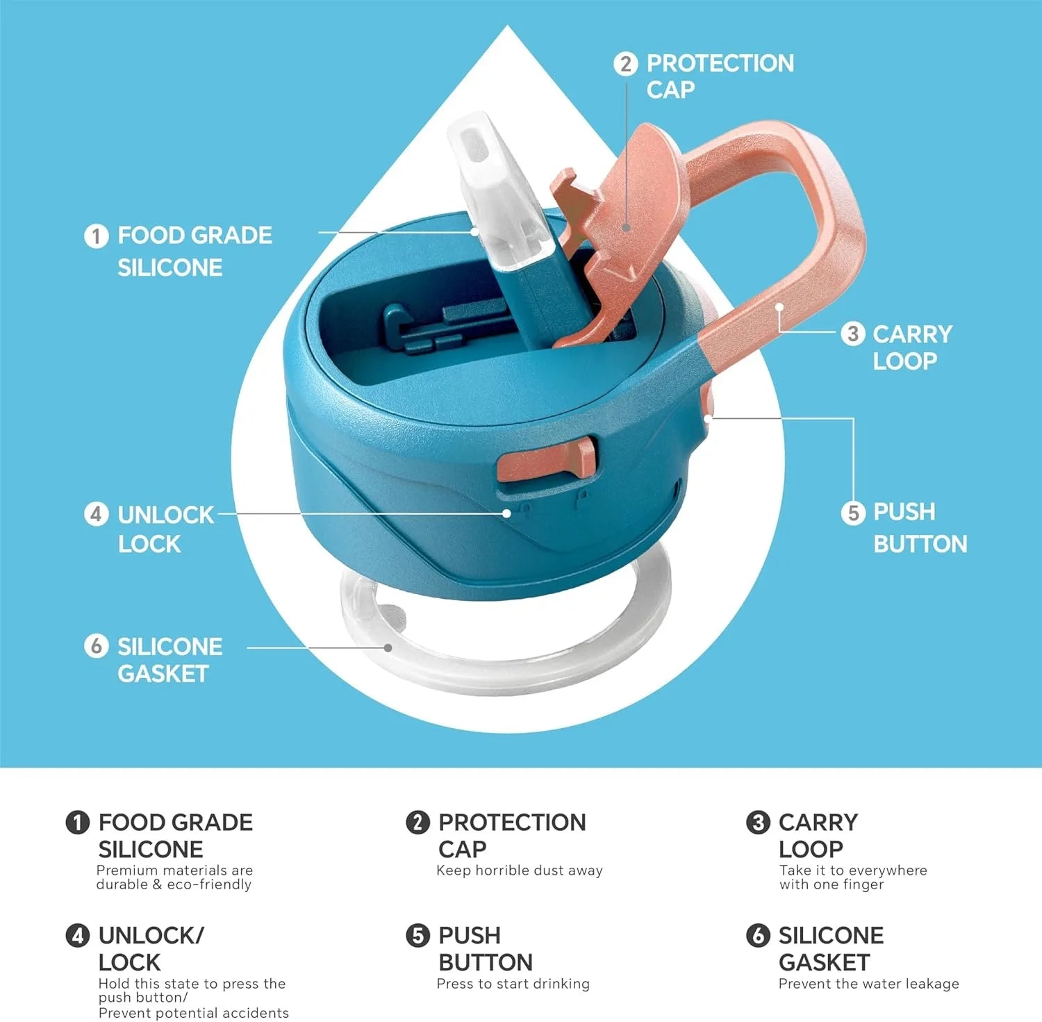 Child-Friendly Design: Features a one-button pop-up straw with a safety lock, ensuring easy access and preventing spills.
