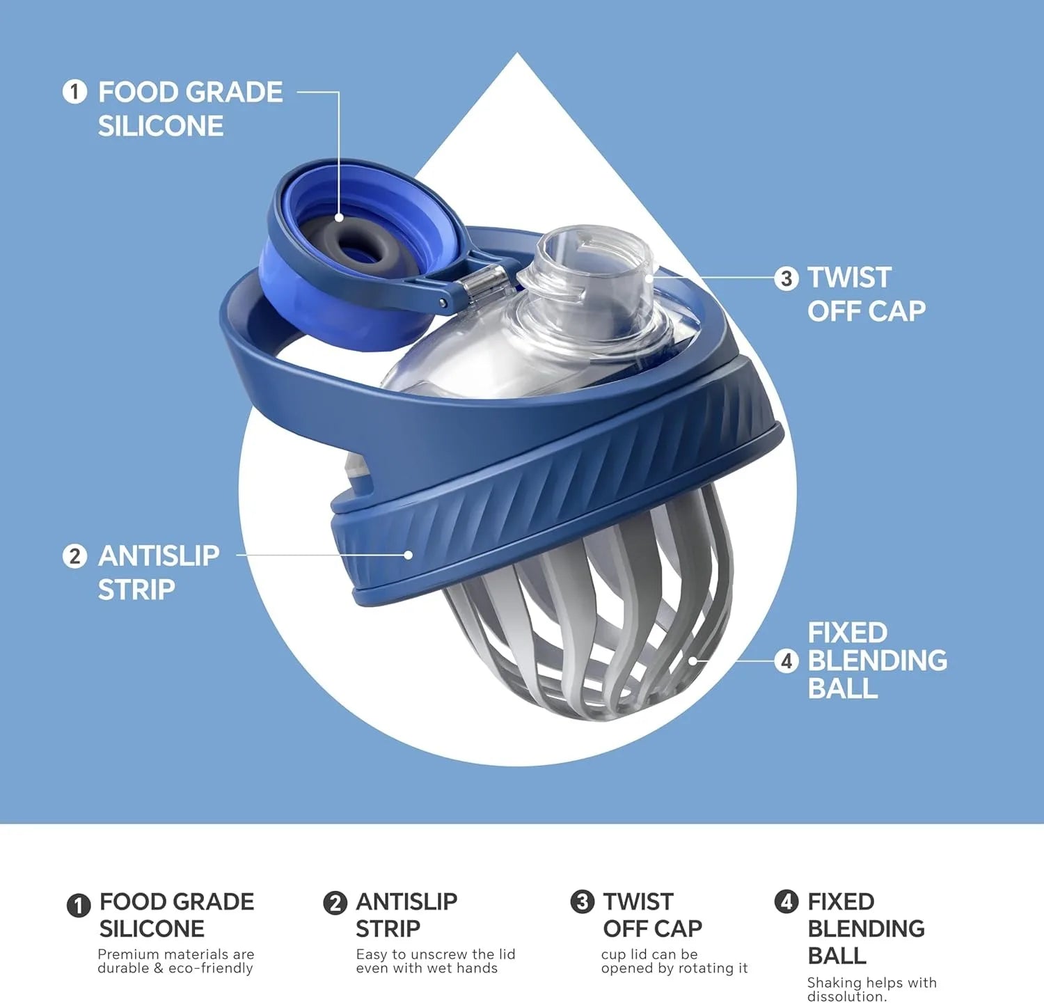 Leak-Proof Design: Featuring a patented seal and silicone base, experience a noise-free and spill-free workout session.